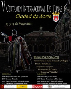 Los días 13 y 14 de Mayo de 2011 se celebró en la capital Soriana el V Certamen de Tunas «Ciudad de Soria», que en esta ocasión contó con la presencia de las siguientes